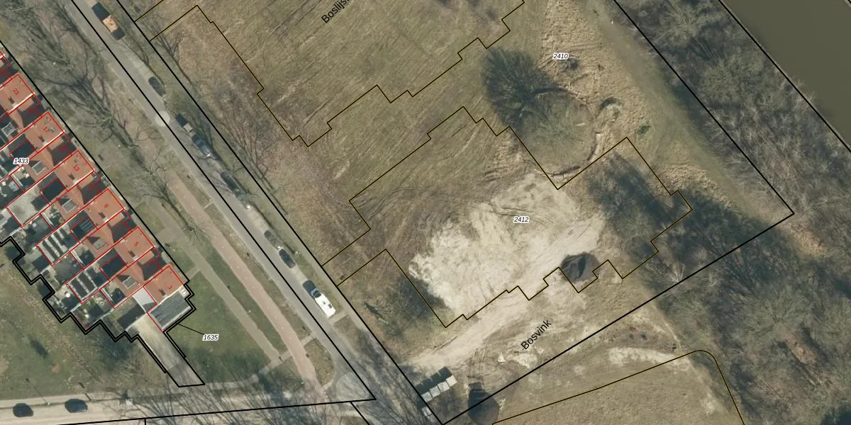 Bosvink 14 is gelegen op kadastraal perceel STR03F2412. Deze kadastrale aanduiding is uniek en wordt gebruikt door het Kadaster om eigendomsrechten en andere zakelijke rechten vast te leggen. Het perceel maakt onderdeel uit van de kadastrale gemeente Strijp.