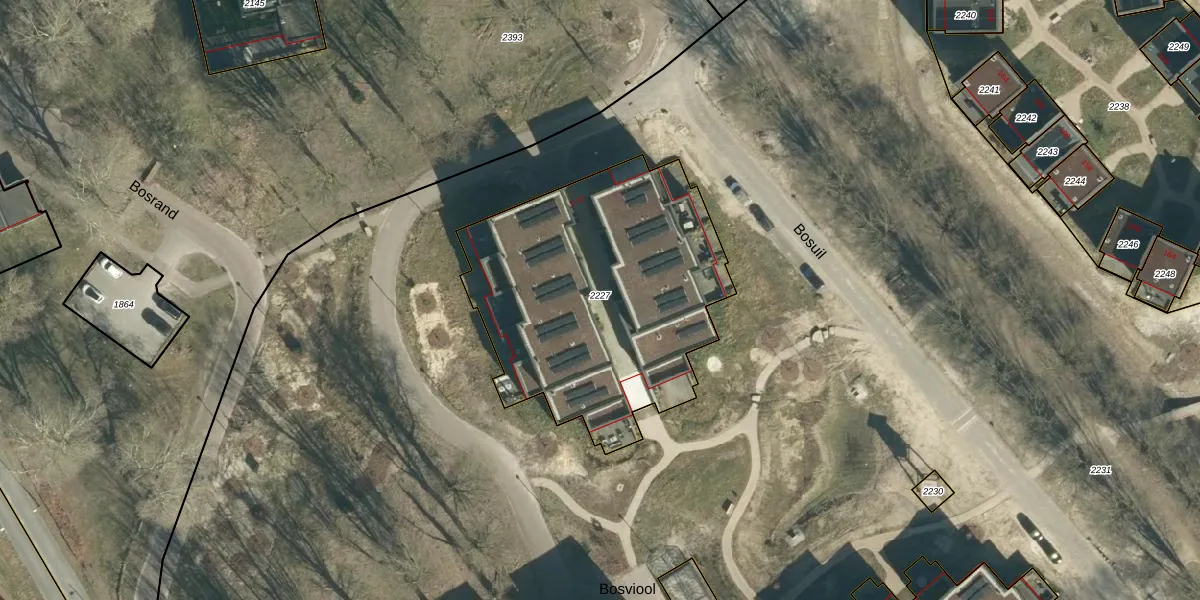 Bosviool 1 is gelegen op kadastraal perceel STR03F2227. Deze kadastrale aanduiding is uniek en wordt gebruikt door het Kadaster om eigendomsrechten en andere zakelijke rechten vast te leggen. Het perceel maakt onderdeel uit van de kadastrale gemeente Strijp.
