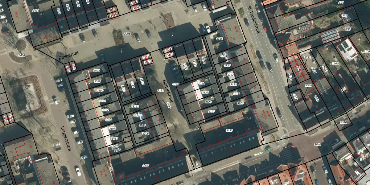 Botterstraat 13 is gelegen op kadastraal perceel STR03D3124. Deze kadastrale aanduiding is uniek en wordt gebruikt door het Kadaster om eigendomsrechten en andere zakelijke rechten vast te leggen. Het perceel maakt onderdeel uit van de kadastrale gemeente Strijp.
