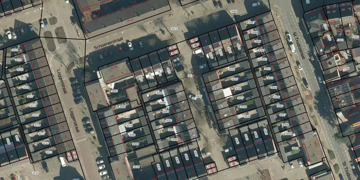 Botterstraat 2 is gelegen op kadastraal perceel STR03D3095. Deze kadastrale aanduiding is uniek en wordt gebruikt door het Kadaster om eigendomsrechten en andere zakelijke rechten vast te leggen. Het perceel maakt onderdeel uit van de kadastrale gemeente Strijp.