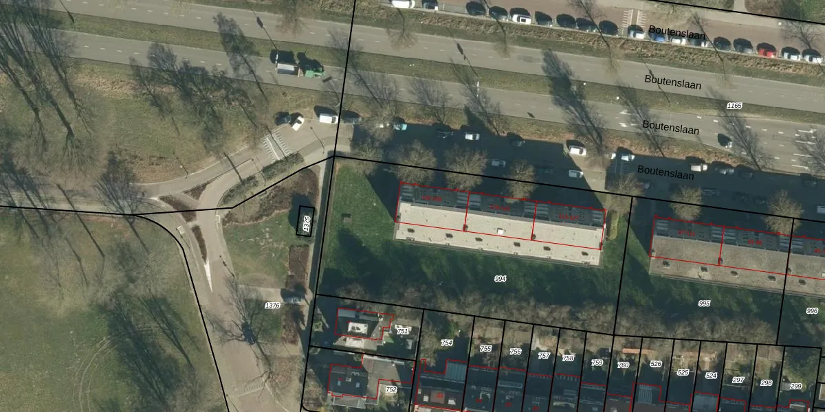 Boutenslaan 155 is gelegen op kadastraal perceel STM00C994. Deze kadastrale aanduiding is uniek en wordt gebruikt door het Kadaster om eigendomsrechten en andere zakelijke rechten vast te leggen. Het perceel maakt onderdeel uit van de kadastrale gemeente Stratum.
