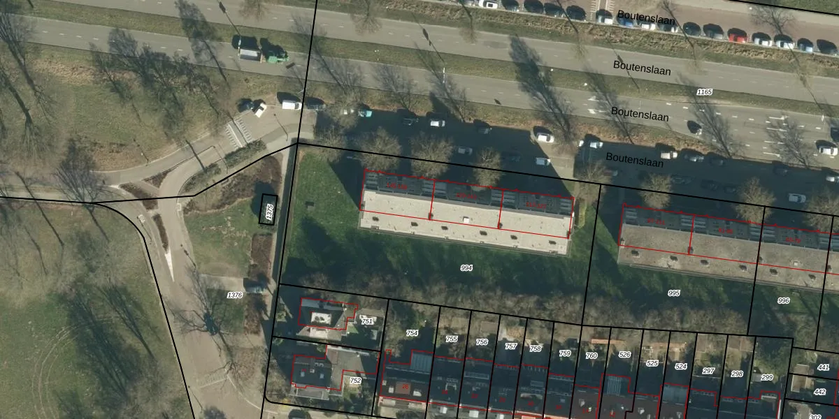 Boutenslaan 157 is gelegen op kadastraal perceel STM00C994. Deze kadastrale aanduiding is uniek en wordt gebruikt door het Kadaster om eigendomsrechten en andere zakelijke rechten vast te leggen. Het perceel maakt onderdeel uit van de kadastrale gemeente Stratum.