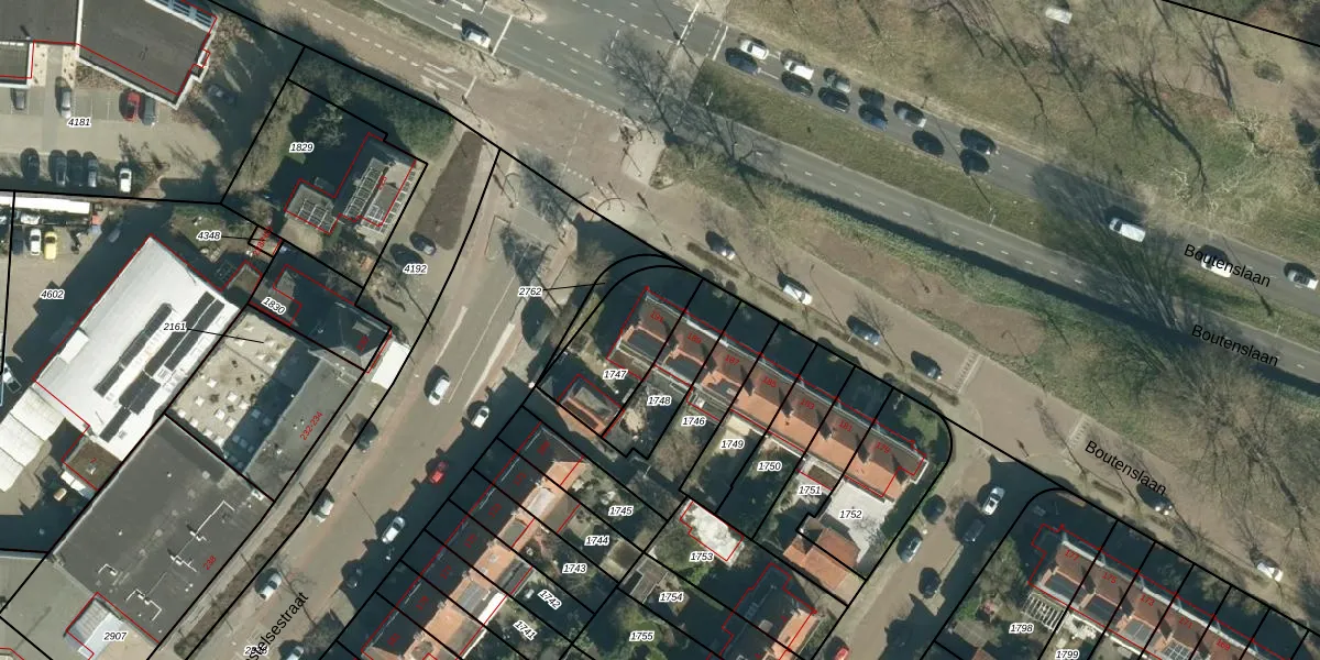 Boutenslaan 191 is gelegen op kadastraal perceel GTL01C1747. Deze kadastrale aanduiding is uniek en wordt gebruikt door het Kadaster om eigendomsrechten en andere zakelijke rechten vast te leggen. Het perceel maakt onderdeel uit van de kadastrale gemeente Gestel.