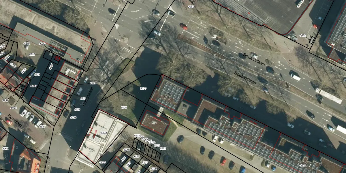 Het perceel waarop Boutenslaan 203 staat heeft een oppervlakte van 3930 m². Dit is een zeer groot perceel. De perceeloppervlakte wordt geregistreerd door het Kadaster. Gedetailleerde informatie over de maten van dit perceel kunt u vinden in het rapport Kadastrale kaart met maatvoering van Boutenslaan 203.