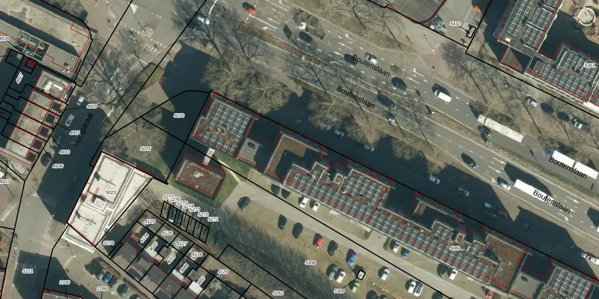 Het perceel waarop Boutenslaan 287 staat heeft een oppervlakte van 3930 m². Dit is een zeer groot perceel. De perceeloppervlakte wordt geregistreerd door het Kadaster. Gedetailleerde informatie over de maten van dit perceel kunt u vinden in het rapport Kadastrale kaart met maatvoering van Boutenslaan 287.
