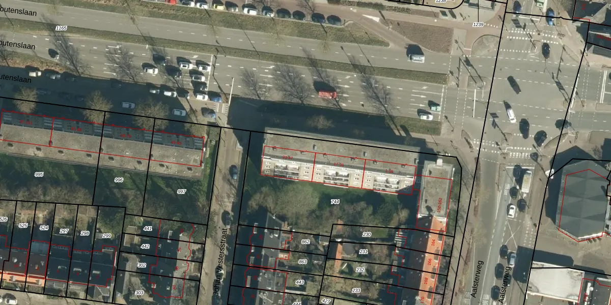 Het perceel waarop Boutenslaan 33 staat heeft een oppervlakte van 1990 m². Dit is een zeer groot perceel. De perceeloppervlakte wordt geregistreerd door het Kadaster. Gedetailleerde informatie over de maten van dit perceel kunt u vinden in het rapport Kadastrale kaart met maatvoering van Boutenslaan 33.