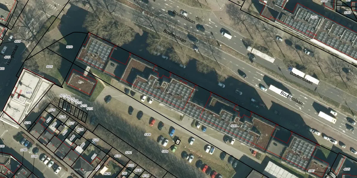 Boutenslaan 383 is gelegen op kadastraal perceel GTL01C5069. Deze kadastrale aanduiding is uniek en wordt gebruikt door het Kadaster om eigendomsrechten en andere zakelijke rechten vast te leggen. Het perceel maakt onderdeel uit van de kadastrale gemeente Gestel.