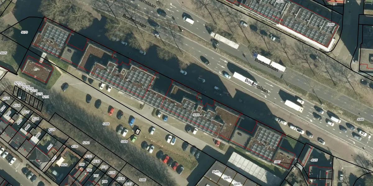Het perceel waarop Boutenslaan 405 staat heeft een oppervlakte van 3930 m². Dit is een zeer groot perceel. De perceeloppervlakte wordt geregistreerd door het Kadaster. Gedetailleerde informatie over de maten van dit perceel kunt u vinden in het rapport Kadastrale kaart met maatvoering van Boutenslaan 405.