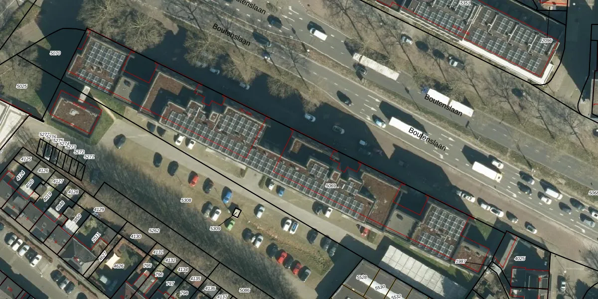 Boutenslaan 427 is gelegen op kadastraal perceel GTL01C5069. Deze kadastrale aanduiding is uniek en wordt gebruikt door het Kadaster om eigendomsrechten en andere zakelijke rechten vast te leggen. Het perceel maakt onderdeel uit van de kadastrale gemeente Gestel.