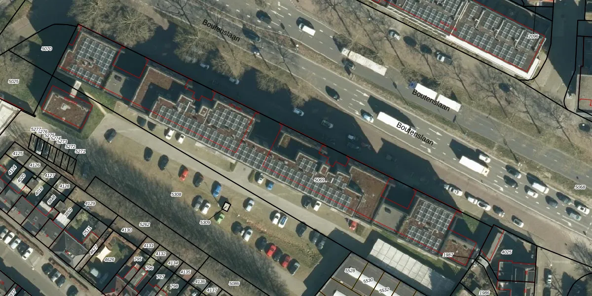 Het perceel waarop Boutenslaan 433 staat heeft een oppervlakte van 3930 m². Dit is een zeer groot perceel. De perceeloppervlakte wordt geregistreerd door het Kadaster. Gedetailleerde informatie over de maten van dit perceel kunt u vinden in het rapport Kadastrale kaart met maatvoering van Boutenslaan 433.