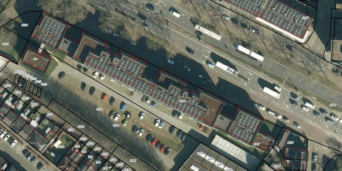 Het perceel waarop Boutenslaan 453 staat heeft een oppervlakte van 3930 m². Dit is een zeer groot perceel. De perceeloppervlakte wordt geregistreerd door het Kadaster. Gedetailleerde informatie over de maten van dit perceel kunt u vinden in het rapport Kadastrale kaart met maatvoering van Boutenslaan 453.
