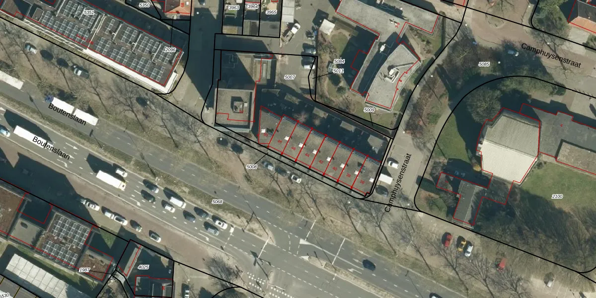 Boutenslaan 46 is gelegen op kadastraal perceel GTL01C5007. Deze kadastrale aanduiding is uniek en wordt gebruikt door het Kadaster om eigendomsrechten en andere zakelijke rechten vast te leggen. Het perceel maakt onderdeel uit van de kadastrale gemeente Gestel.