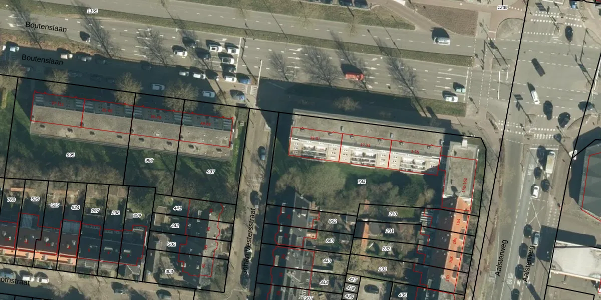 Het perceel waarop Boutenslaan 47 staat heeft een oppervlakte van 1990 m². Dit is een zeer groot perceel. De perceeloppervlakte wordt geregistreerd door het Kadaster. Gedetailleerde informatie over de maten van dit perceel kunt u vinden in het rapport Kadastrale kaart met maatvoering van Boutenslaan 47.