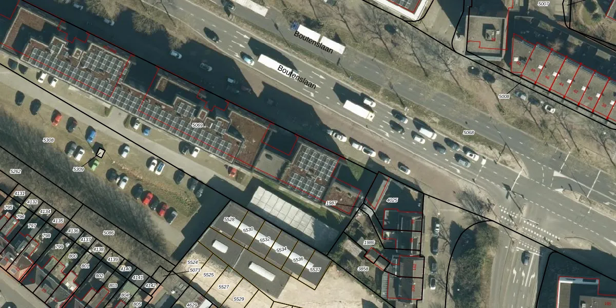 Boutenslaan 537 is gelegen op kadastraal perceel GTL01C5069. Deze kadastrale aanduiding is uniek en wordt gebruikt door het Kadaster om eigendomsrechten en andere zakelijke rechten vast te leggen. Het perceel maakt onderdeel uit van de kadastrale gemeente Gestel.