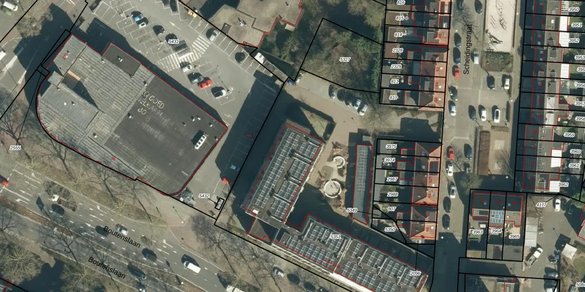 Het perceel waarop Boutenslaan 54-07 staat heeft een oppervlakte van 3569 m². Dit is een zeer groot perceel. De perceeloppervlakte wordt geregistreerd door het Kadaster. Gedetailleerde informatie over de maten van dit perceel kunt u vinden in het rapport Kadastrale kaart met maatvoering van Boutenslaan 54-07.