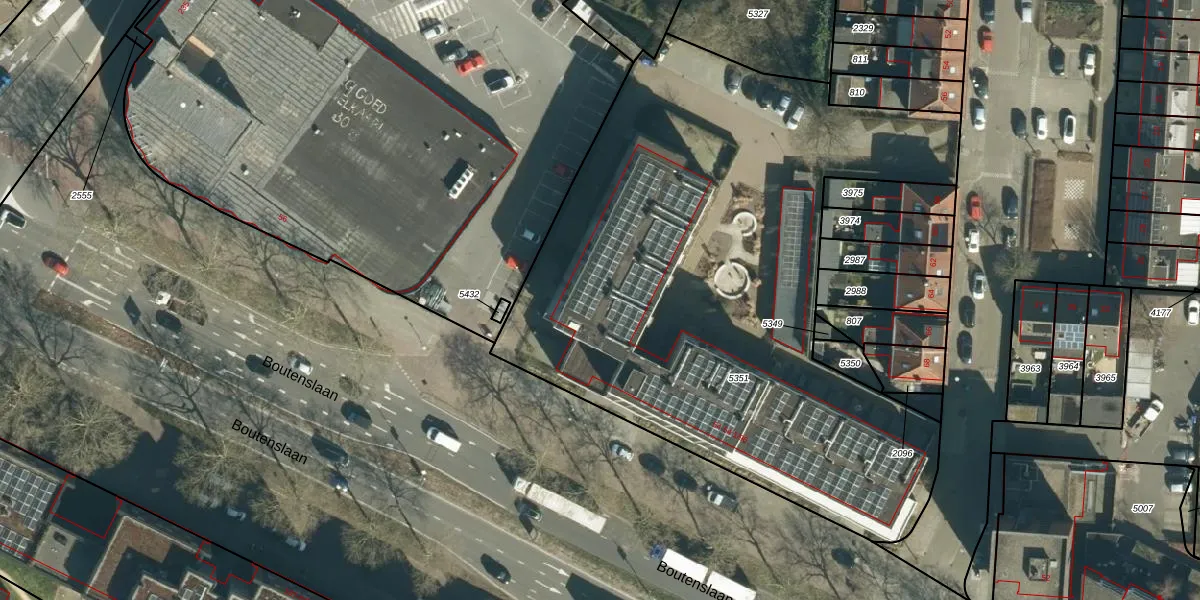 Het perceel waarop Boutenslaan 54-26 staat heeft een oppervlakte van 3569 m². Dit is een zeer groot perceel. De perceeloppervlakte wordt geregistreerd door het Kadaster. Gedetailleerde informatie over de maten van dit perceel kunt u vinden in het rapport Kadastrale kaart met maatvoering van Boutenslaan 54-26.