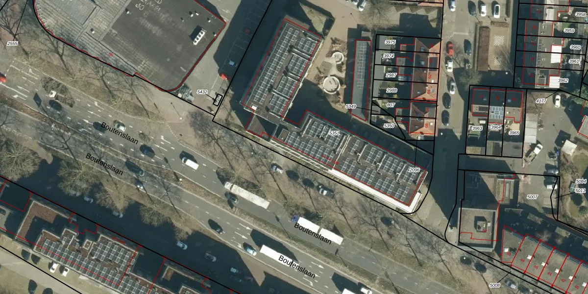 Het perceel waarop Boutenslaan 54-62 staat heeft een oppervlakte van 3569 m². Dit is een zeer groot perceel. De perceeloppervlakte wordt geregistreerd door het Kadaster. Gedetailleerde informatie over de maten van dit perceel kunt u vinden in het rapport Kadastrale kaart met maatvoering van Boutenslaan 54-62.