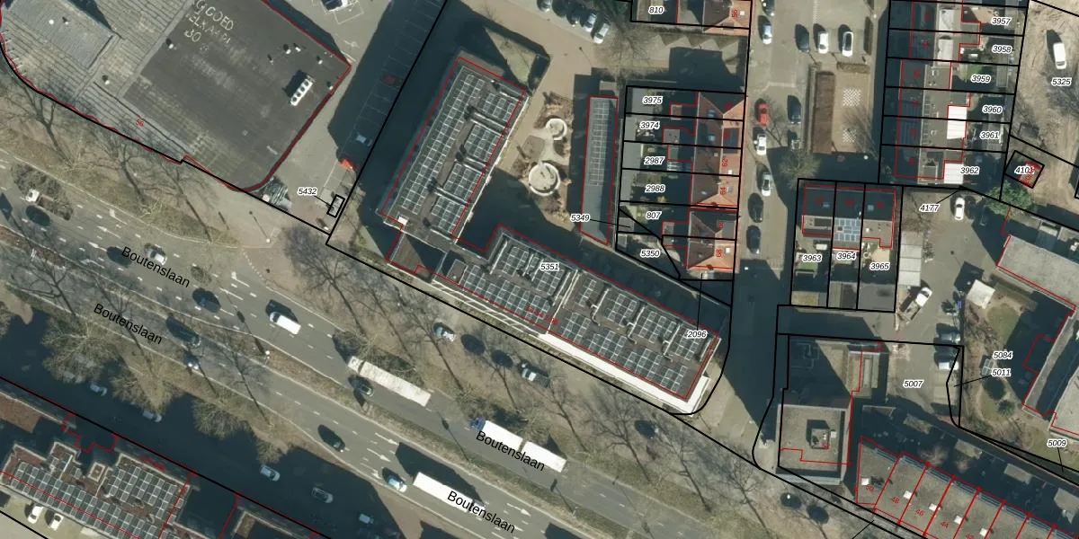 Boutenslaan 54-56 is gelegen op kadastraal perceel GTL01C5351. Deze kadastrale aanduiding is uniek en wordt gebruikt door het Kadaster om eigendomsrechten en andere zakelijke rechten vast te leggen. Het perceel maakt onderdeel uit van de kadastrale gemeente Gestel.
