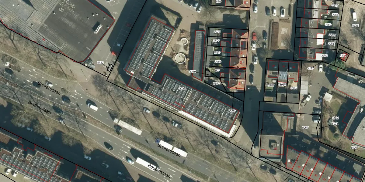 Het perceel waarop Boutenslaan 54-54 staat heeft een oppervlakte van 3569 m². Dit is een zeer groot perceel. De perceeloppervlakte wordt geregistreerd door het Kadaster. Gedetailleerde informatie over de maten van dit perceel kunt u vinden in het rapport Kadastrale kaart met maatvoering van Boutenslaan 54-54.