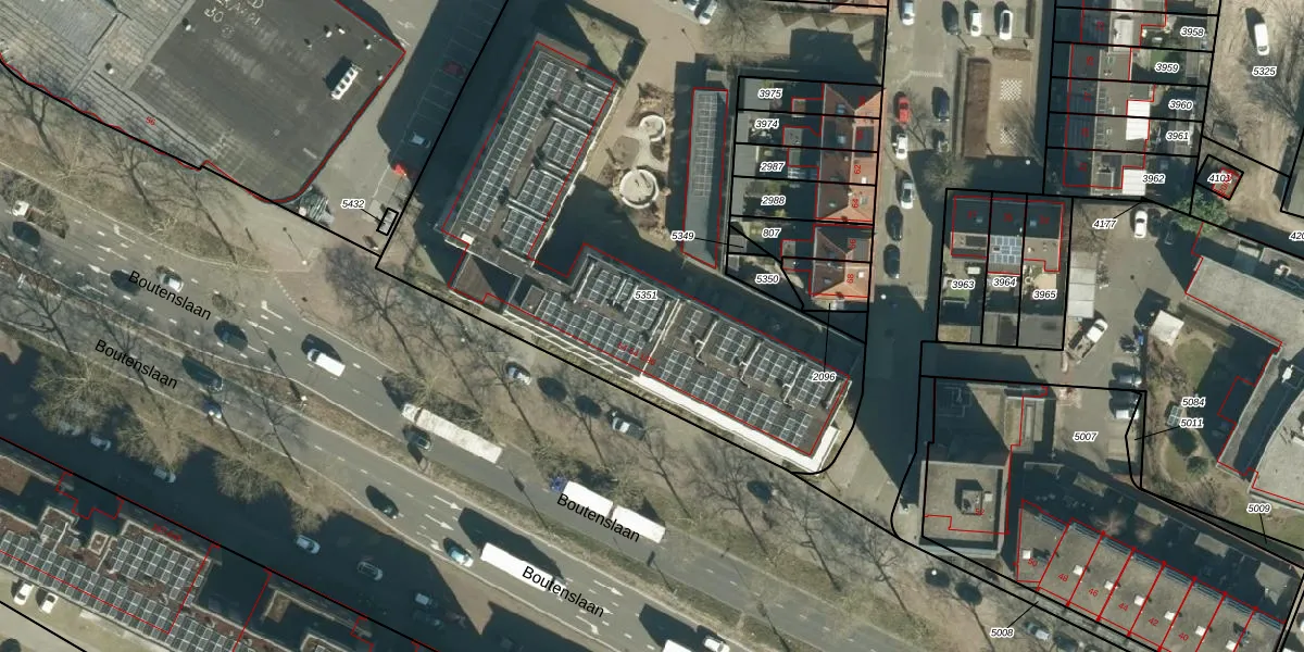 Het perceel waarop Boutenslaan 54-55 staat heeft een oppervlakte van 3569 m². Dit is een zeer groot perceel. De perceeloppervlakte wordt geregistreerd door het Kadaster. Gedetailleerde informatie over de maten van dit perceel kunt u vinden in het rapport Kadastrale kaart met maatvoering van Boutenslaan 54-55.
