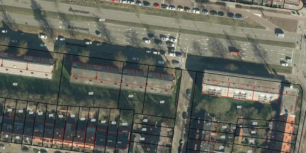 Boutenslaan 55 is gelegen op kadastraal perceel STM00C997. Deze kadastrale aanduiding is uniek en wordt gebruikt door het Kadaster om eigendomsrechten en andere zakelijke rechten vast te leggen. Het perceel maakt onderdeel uit van de kadastrale gemeente Stratum.