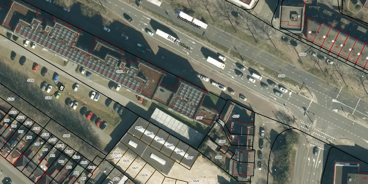 Het perceel waarop Boutenslaan 573 staat heeft een oppervlakte van 3930 m². Dit is een zeer groot perceel. De perceeloppervlakte wordt geregistreerd door het Kadaster. Gedetailleerde informatie over de maten van dit perceel kunt u vinden in het rapport Kadastrale kaart met maatvoering van Boutenslaan 573.