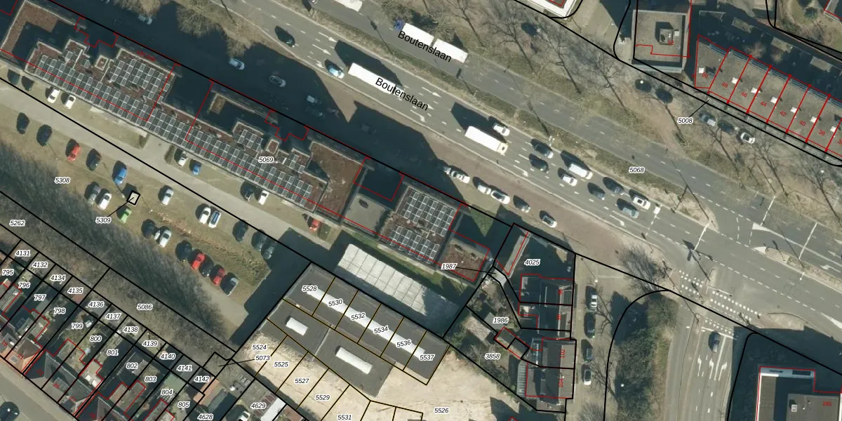 Het perceel waarop Boutenslaan 577 staat heeft een oppervlakte van 3930 m². Dit is een zeer groot perceel. De perceeloppervlakte wordt geregistreerd door het Kadaster. Gedetailleerde informatie over de maten van dit perceel kunt u vinden in het rapport Kadastrale kaart met maatvoering van Boutenslaan 577.