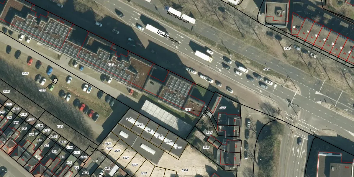 Het perceel waarop Boutenslaan 599 staat heeft een oppervlakte van 3930 m². Dit is een zeer groot perceel. De perceeloppervlakte wordt geregistreerd door het Kadaster. Gedetailleerde informatie over de maten van dit perceel kunt u vinden in het rapport Kadastrale kaart met maatvoering van Boutenslaan 599.