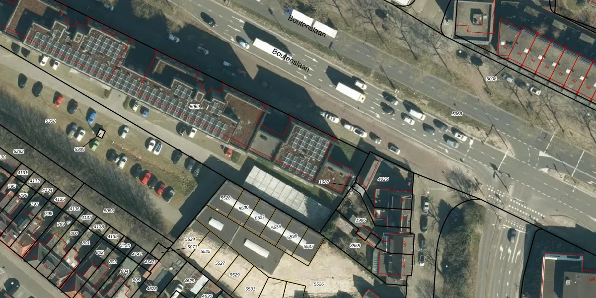 Het perceel waarop Boutenslaan 613 staat heeft een oppervlakte van 3930 m². Dit is een zeer groot perceel. De perceeloppervlakte wordt geregistreerd door het Kadaster. Gedetailleerde informatie over de maten van dit perceel kunt u vinden in het rapport Kadastrale kaart met maatvoering van Boutenslaan 613.