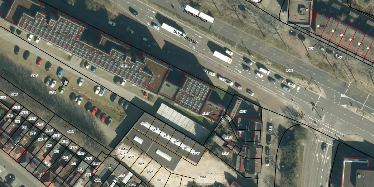 Het perceel waarop Boutenslaan 627 staat heeft een oppervlakte van 3930 m². Dit is een zeer groot perceel. De perceeloppervlakte wordt geregistreerd door het Kadaster. Gedetailleerde informatie over de maten van dit perceel kunt u vinden in het rapport Kadastrale kaart met maatvoering van Boutenslaan 627.