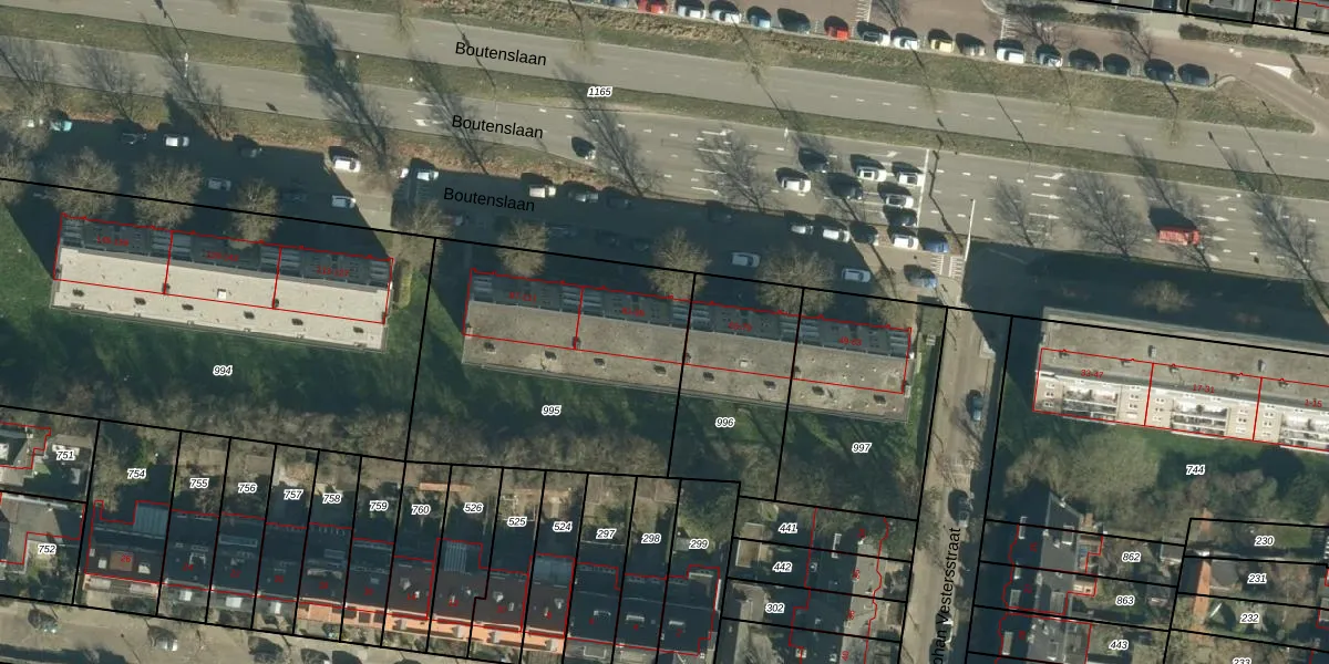 Boutenslaan 89 is gelegen op kadastraal perceel STM00C995. Deze kadastrale aanduiding is uniek en wordt gebruikt door het Kadaster om eigendomsrechten en andere zakelijke rechten vast te leggen. Het perceel maakt onderdeel uit van de kadastrale gemeente Stratum.