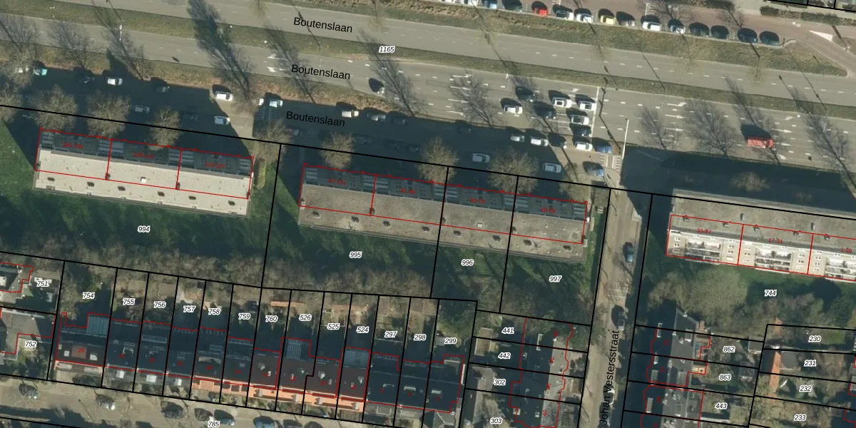 Boutenslaan 93 is gelegen op kadastraal perceel STM00C995. Deze kadastrale aanduiding is uniek en wordt gebruikt door het Kadaster om eigendomsrechten en andere zakelijke rechten vast te leggen. Het perceel maakt onderdeel uit van de kadastrale gemeente Stratum.