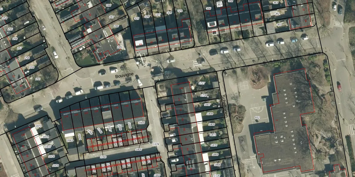 Het perceel waarop Bouvigne 134 staat heeft een oppervlakte van 325 m². Dit is een groot perceel. De perceeloppervlakte wordt geregistreerd door het Kadaster. Gedetailleerde informatie over de maten van dit perceel kunt u vinden in het rapport Kadastrale kaart met maatvoering van Bouvigne 134.