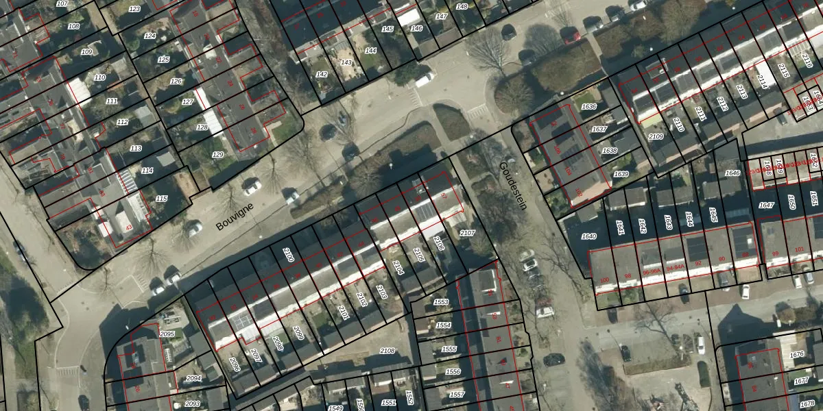 Het perceel waarop Bouvigne 50 staat heeft een oppervlakte van 158 m². Dit is een middelgroot perceel. De perceeloppervlakte wordt geregistreerd door het Kadaster. Gedetailleerde informatie over de maten van dit perceel kunt u vinden in het rapport Kadastrale kaart met maatvoering van Bouvigne 50.