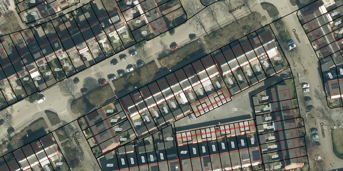 Gebruik de zoekbalk of klik op een perceel voor informatie over de adressen binnen dit perceel.