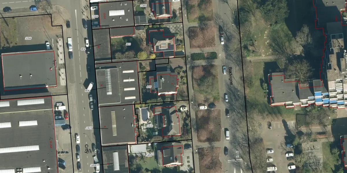 Het perceel waarop Bouvigne 9 staat heeft een oppervlakte van 608 m². Dit is een groot perceel. De perceeloppervlakte wordt geregistreerd door het Kadaster. Gedetailleerde informatie over de maten van dit perceel kunt u vinden in het rapport Kadastrale kaart met maatvoering van Bouvigne 9.