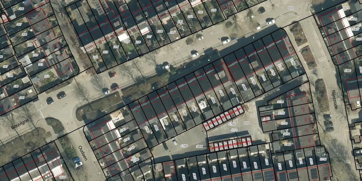 Het perceel waarop Bouvigne 96 staat heeft een oppervlakte van 157 m². Dit is een middelgroot perceel. De perceeloppervlakte wordt geregistreerd door het Kadaster. Gedetailleerde informatie over de maten van dit perceel kunt u vinden in het rapport Kadastrale kaart met maatvoering van Bouvigne 96.