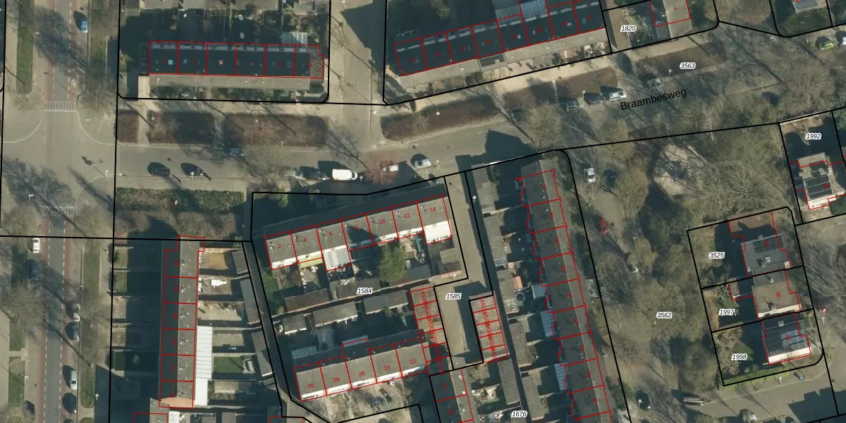 Braambesweg 14 is gelegen op kadastraal perceel WSL01C1584. Deze kadastrale aanduiding is uniek en wordt gebruikt door het Kadaster om eigendomsrechten en andere zakelijke rechten vast te leggen. Het perceel maakt onderdeel uit van de kadastrale gemeente Woensel.