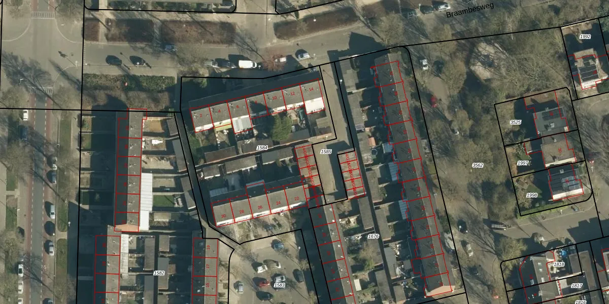 Braambesweg 14-G01 is gelegen op kadastraal perceel WSL01C1584. Deze kadastrale aanduiding is uniek en wordt gebruikt door het Kadaster om eigendomsrechten en andere zakelijke rechten vast te leggen. Het perceel maakt onderdeel uit van de kadastrale gemeente Woensel.