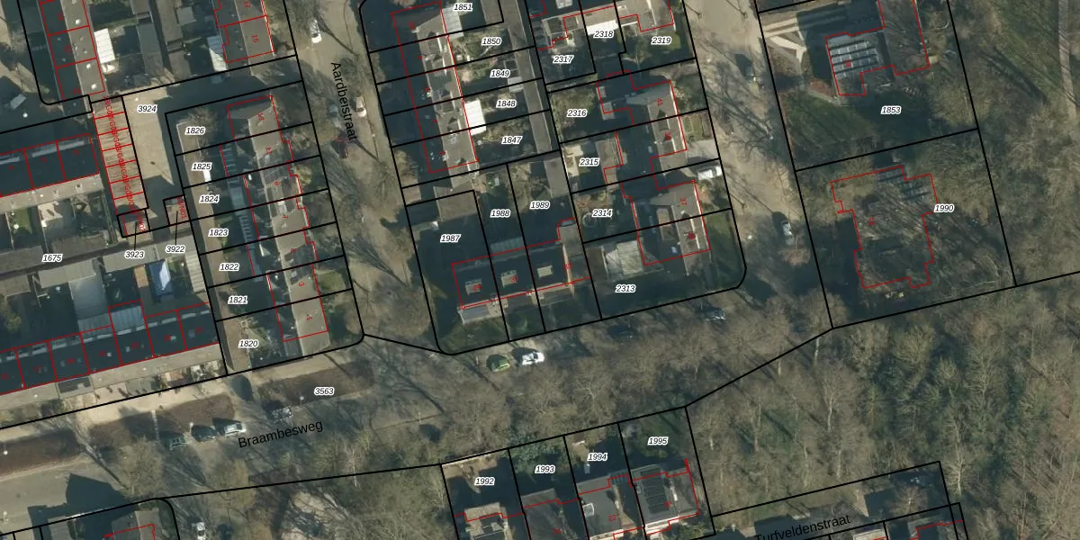 Het perceel waarop Braambesweg 33 staat heeft een oppervlakte van 338 m². Dit is een groot perceel. De perceeloppervlakte wordt geregistreerd door het Kadaster. Gedetailleerde informatie over de maten van dit perceel kunt u vinden in het rapport Kadastrale kaart met maatvoering van Braambesweg 33.