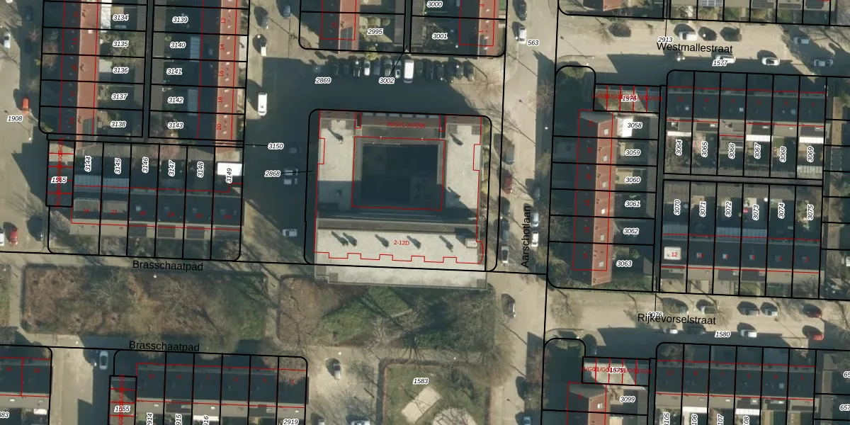 Brasschaatpad 12-B is gelegen op kadastraal perceel WSL01M2868. Deze kadastrale aanduiding is uniek en wordt gebruikt door het Kadaster om eigendomsrechten en andere zakelijke rechten vast te leggen. Het perceel maakt onderdeel uit van de kadastrale gemeente Woensel.