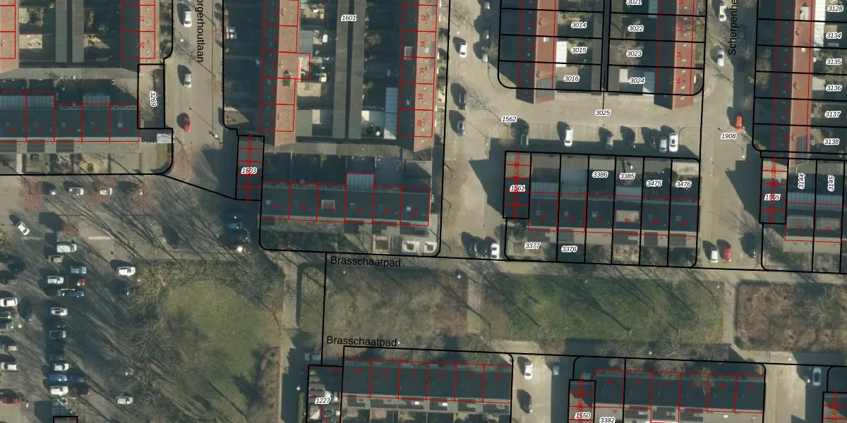 Het perceel waarop Brasschaatpad 38 staat heeft een oppervlakte van 5592 m². Dit is een zeer groot perceel. De perceeloppervlakte wordt geregistreerd door het Kadaster. Gedetailleerde informatie over de maten van dit perceel kunt u vinden in het rapport Kadastrale kaart met maatvoering van Brasschaatpad 38.