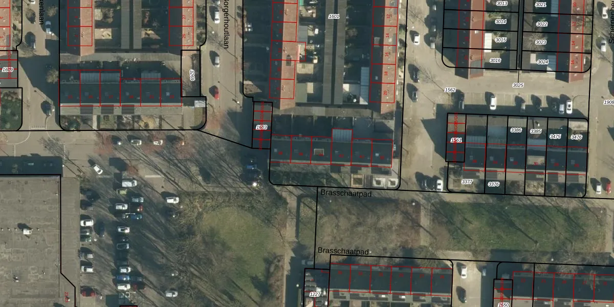 Het perceel waarop Brasschaatpad 46 staat heeft een oppervlakte van 5592 m². Dit is een zeer groot perceel. De perceeloppervlakte wordt geregistreerd door het Kadaster. Gedetailleerde informatie over de maten van dit perceel kunt u vinden in het rapport Kadastrale kaart met maatvoering van Brasschaatpad 46.