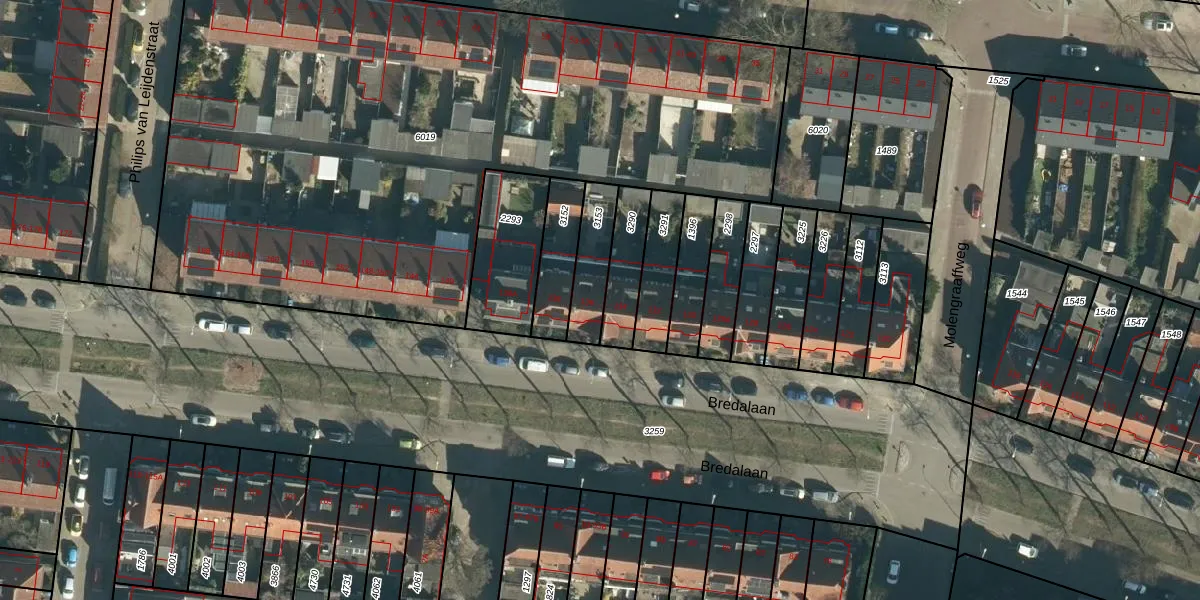 Bredalaan 136 is gelegen op kadastraal perceel STR03C3153. Deze kadastrale aanduiding is uniek en wordt gebruikt door het Kadaster om eigendomsrechten en andere zakelijke rechten vast te leggen. Het perceel maakt onderdeel uit van de kadastrale gemeente Strijp.