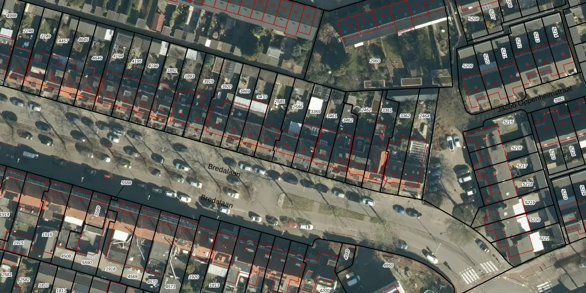 Gebruik de zoekbalk of klik op een perceel voor informatie over de adressen binnen dit perceel.