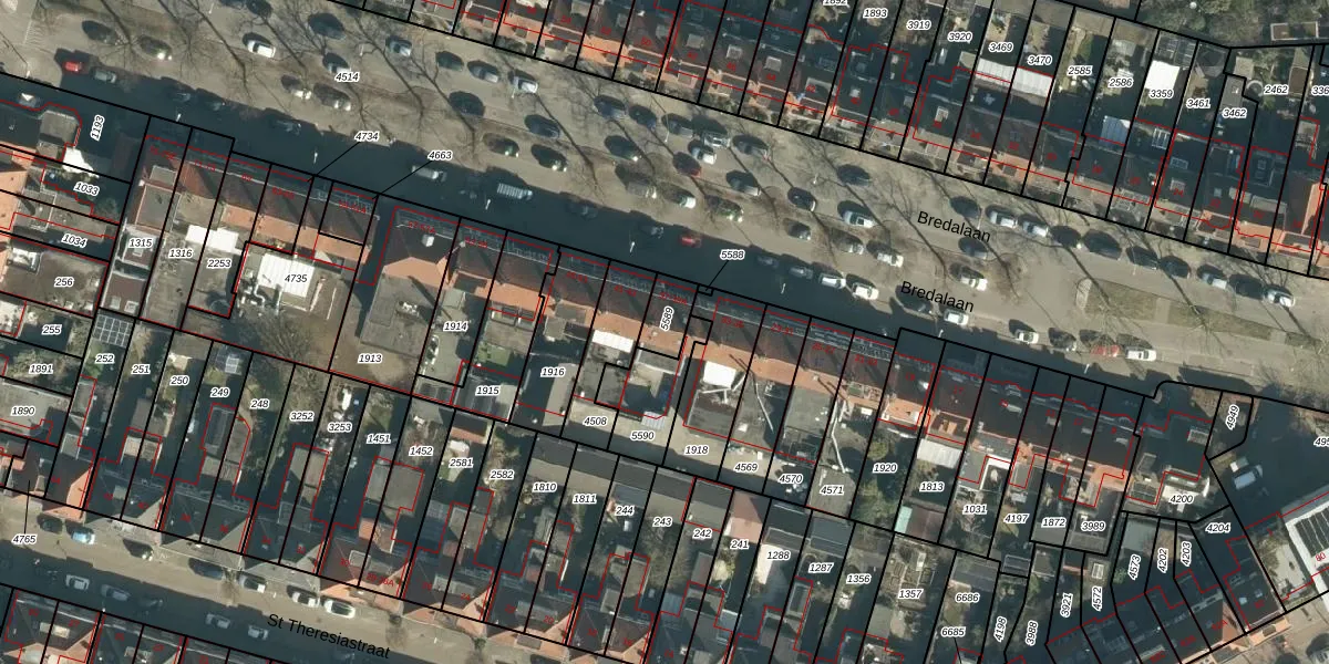 Het perceel waarop Bredalaan 39-A staat heeft een oppervlakte van 78 m². Dit is een klein perceel. De perceeloppervlakte wordt geregistreerd door het Kadaster. Gedetailleerde informatie over de maten van dit perceel kunt u vinden in het rapport Kadastrale kaart met maatvoering van Bredalaan 39-A.