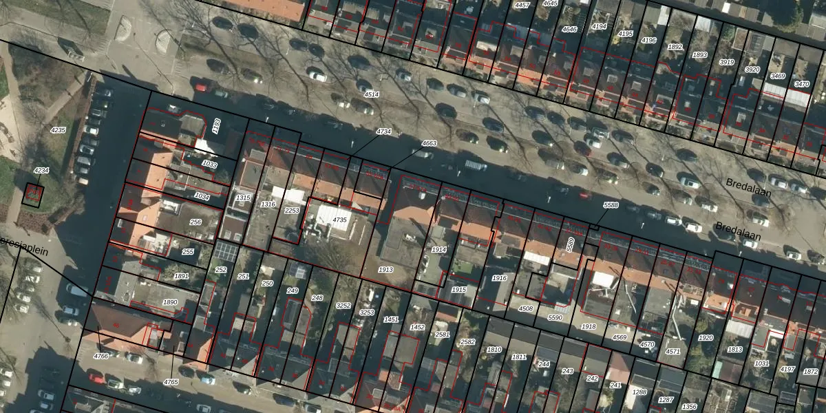 Bredalaan 57-A is gelegen op kadastraal perceel STR03C1913. Deze kadastrale aanduiding is uniek en wordt gebruikt door het Kadaster om eigendomsrechten en andere zakelijke rechten vast te leggen. Het perceel maakt onderdeel uit van de kadastrale gemeente Strijp.