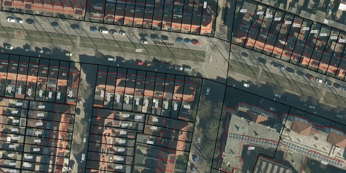Gebruik de zoekbalk of klik op een perceel voor informatie over de adressen binnen dit perceel.