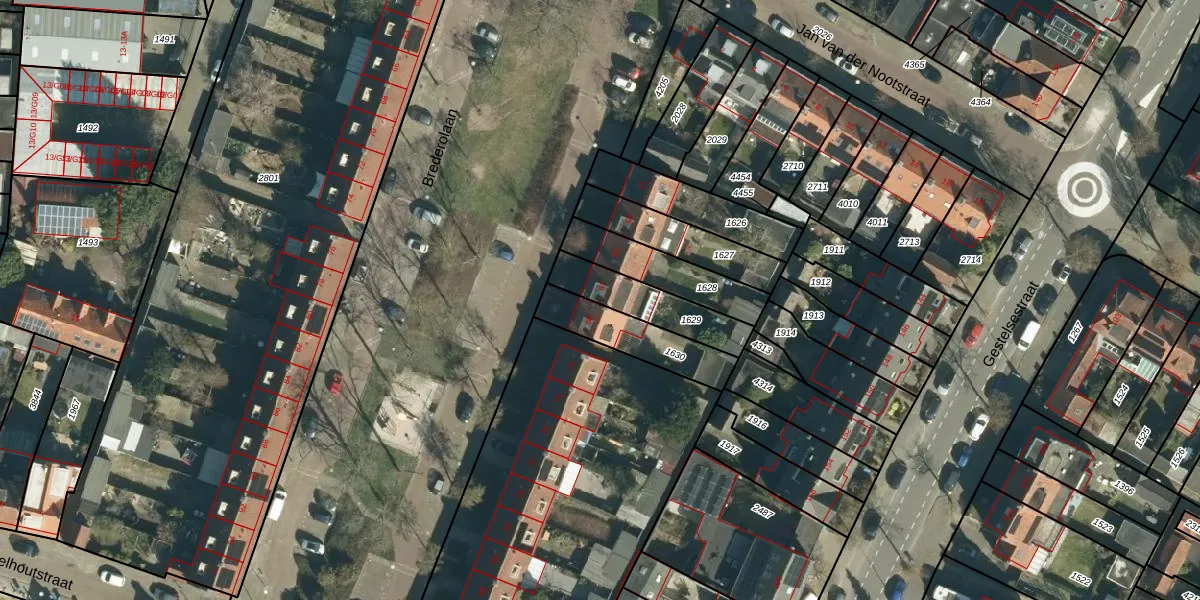 Brederolaan 67 is gelegen op kadastraal perceel GTL01C1629. Deze kadastrale aanduiding is uniek en wordt gebruikt door het Kadaster om eigendomsrechten en andere zakelijke rechten vast te leggen. Het perceel maakt onderdeel uit van de kadastrale gemeente Gestel.
