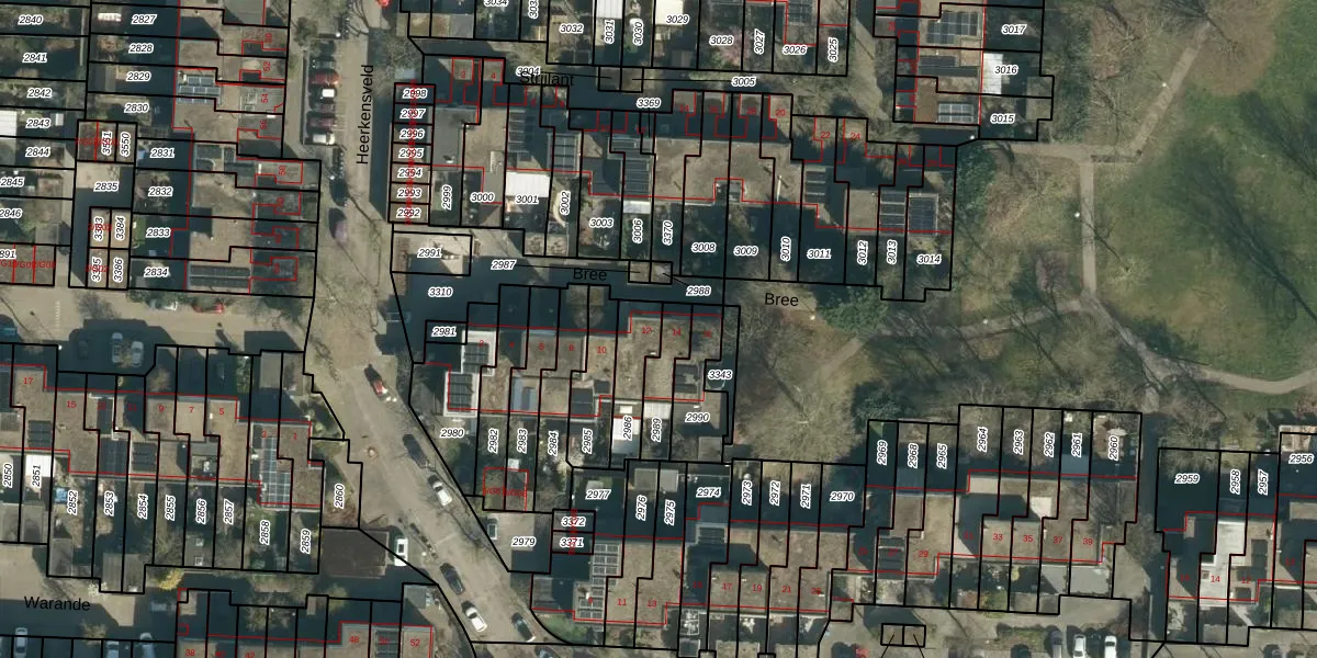 Gebruik de zoekbalk of klik op een perceel voor informatie over de adressen binnen dit perceel.
